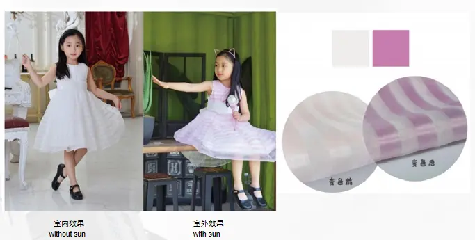 Bahan fotokromis minangka bahan bubuk fotokokroom sing diprodhuksi kanthi mbungkus pewutaran fotografi ing mikrokasi liwat proses srengenge (ultraviolet) sawise ora ana owah-owahan ing sunar sunar (ultraviolet), nyebabake owah-owahan warna panyerapan, nyebabake owah-owahan warna; Nalika energi srengenge (ultraviolet) ilang, bali menyang struktur molekul asli lan mulihake warna asli. Karakteristik: